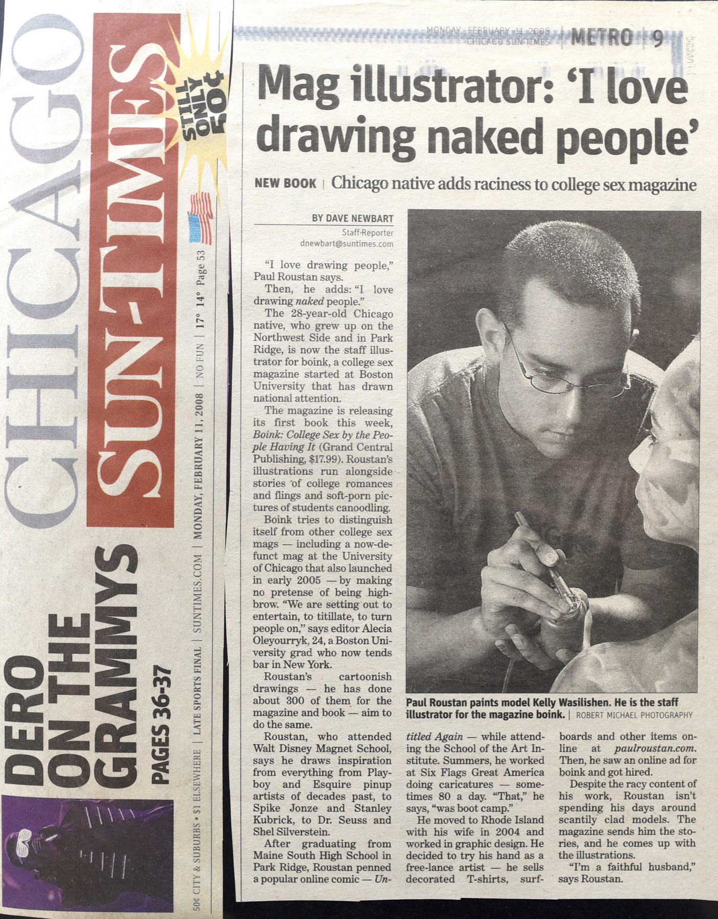 An alum of both the School of the Art Institute of Chicago and Rhode Island School of Design, Roustan’s career spans both the fine art and commercial worlds. His work has appeared on media including, Spike TV, The Game Show Network, Sabado Gigante, the Chicago Sun-Times, The New York Post, GQ, Playboy, Maxim, and galleries along the East and West coasts.