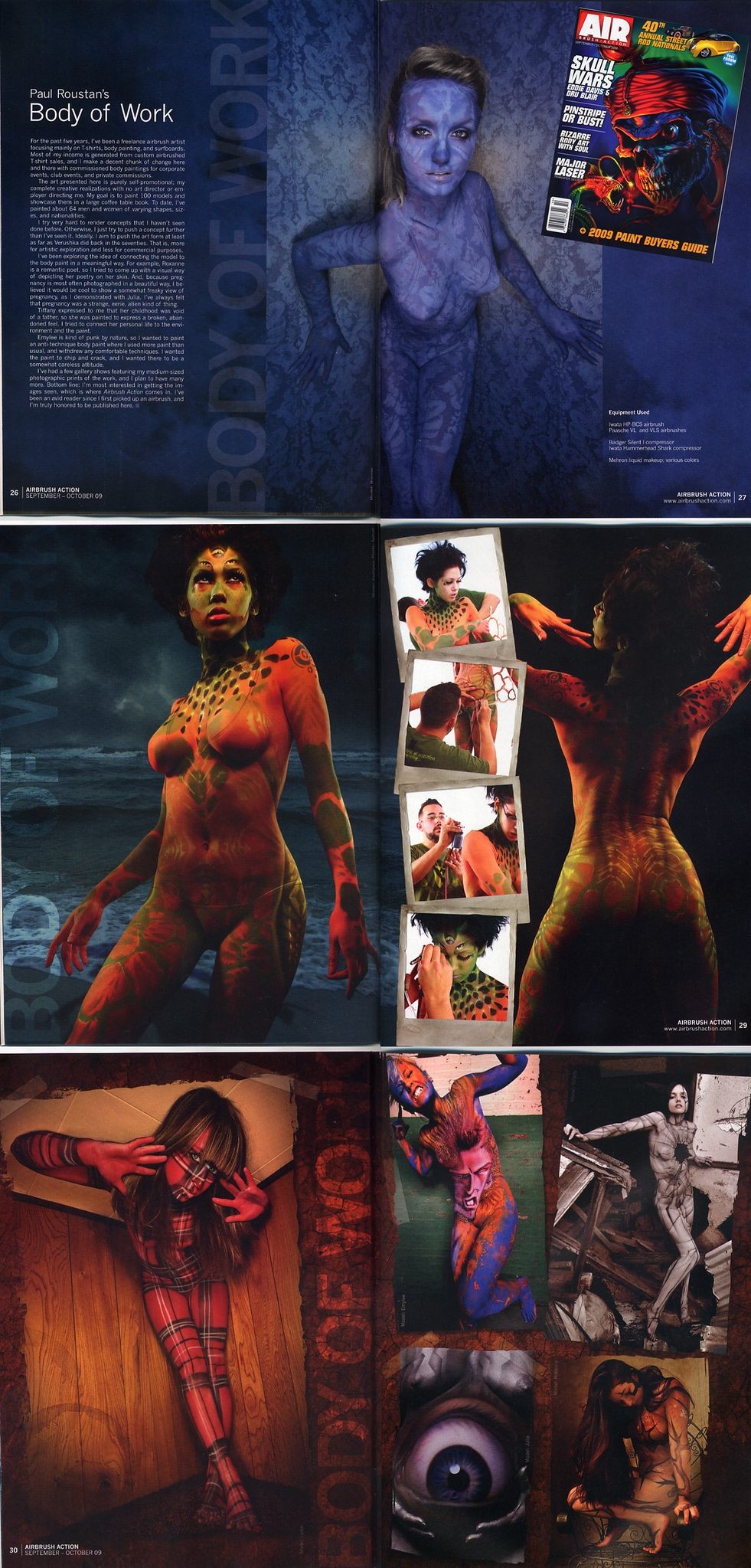 Los Angeles body painter, Paul Roustan, is known for his art in body painting and photography. Winner of the North American Bodypaint Championships, Roustan is recognized as one of the world’s leading bodypainters whose style combines traditional fine art, pop culture, and reflections of the contemporary world to create conceptually-based bodypainting.